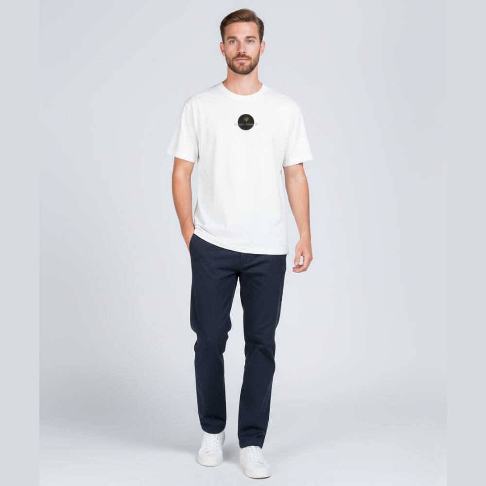 中央にあしらわれたワンポイントのプリントが、さりげないアクセントを加え、