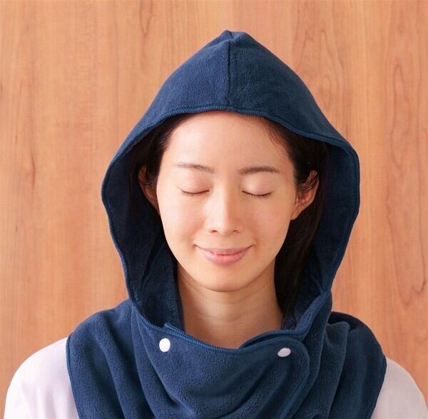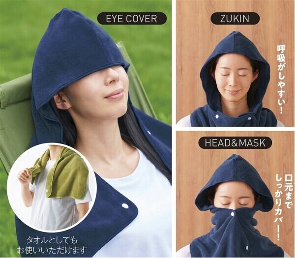 巻き方次第で顔や髪を熱から守れるサウナタオルです。