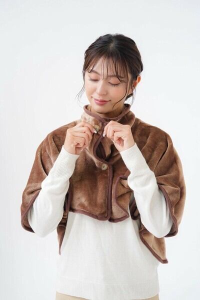 方までしっかり覆って、冷えやすい肩や首元を包みこんでポカポカあったか。