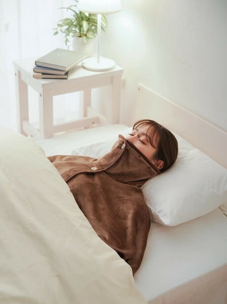 首肩の冷気をガード。ふんわりはおって朝まであったか!