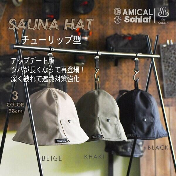 チューリップ型の サウナハット つばが長くなり 再登場 深く被れて 遮熱対策強化 !